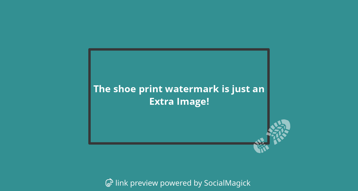 Two, you know your Extra Image has transparency, so you want it overlaid on the image but underneath the text for a watermark effect. In the example below, the shoeprint is a semi-transparent static image. We used the resizing and cropping parameters to move it to the lower right corner of the text box, creating this watermark effect.